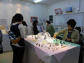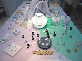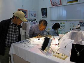 | ●君野たつみ(個展主催者) 石留め、仕上げ等の職人として本職をこなす一方、オリジナルアクセサリーの製作にも力を入れる。 昨今の職人不足の風潮により絶滅危惧種リストに載る?希少な存在と自負しているらしい |