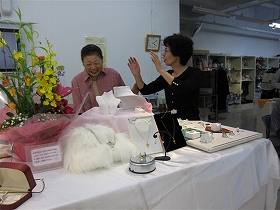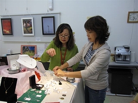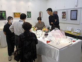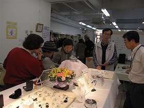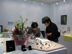 | ●君野たつみ(個展主催者) 石留め、仕上げ等の職人として本職をこなす一方、オリジナルアクセサリーの製作にも力を入れる。 昨今の職人不足の風潮により絶滅危惧種リストに載る?希少な存在と自負しているらしい |