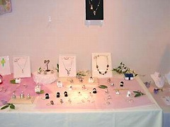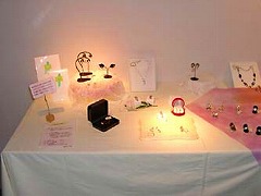 | ●君野たつみ(個展主催者) 石留め、仕上げ等の職人として本職をこなす一方、オリジナルアクセサリーの製作にも力を入れる。 昨今の職人不足の風潮により絶滅危惧種リストに載る?希少な存在と自負しているらしい |